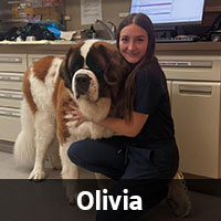 RachelRachel joined the practice in December 2017 as a member of the Pet Care Team. In January 2020, she joined the Veterinary Assistant Team. When Rachel is not at work she enjoys fishing, four-wheeling, camping, traveling and spending time with her pets and loved ones. Rachel has Cavachon named Nash and a Puggle named Payton!Veterinary AssistantOliviaOlivia joined the practice in 2021 as a Canine Groomer and Veterinary Treatment Assistant. Olivia attended Onondaga Community College and Alfred State College. In her spare time, Olivia enjoys being outside, adventuring, traveling, and blogging about food. At home, Olivia has two dogs, a wire-haired Dachshund named Rufus and a Chihuahua/Pomeranian mix named Scully.Canine Groomer and Veterinary Treatment AssistantKimKim joined the practice in 2021 as a member of the Veterinary Receptionist Team. In 2022 Kim joined the Veterinary Assistant Team. At home; she has a pit mix, Diamond, a foxhound, Benny, a ball python, Kaa, and a leopard gecko, Leo.
